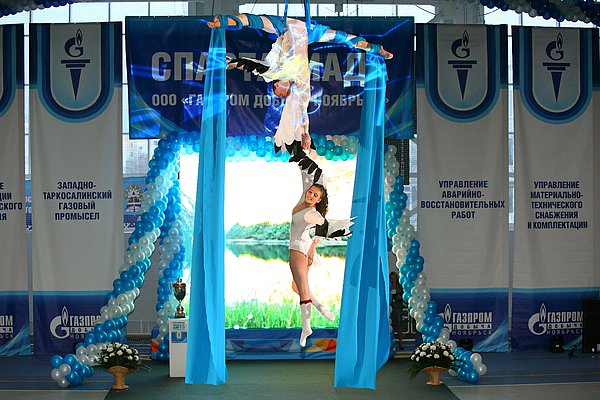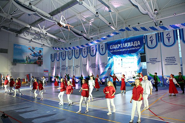 Яркой и красочной получилась церемония открытия Спартакиады, которая прошла с участием гимнастов из Екатеринбурга. Они исполнили несколько акробатических композиций, в том числе продемонстрировали «полет» двух стерхов. Кроме того, в открытии приняли участие воспитанники различных детских секций, действующих при поддержке ООО «Газпром добыча Ноябрьск».